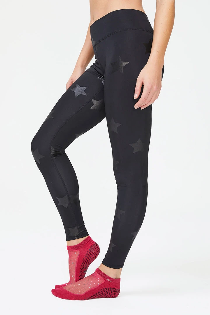 Meet the classic black legging, Terez style. That is, joyfully reimagined with black foil stars that shine in the light.
