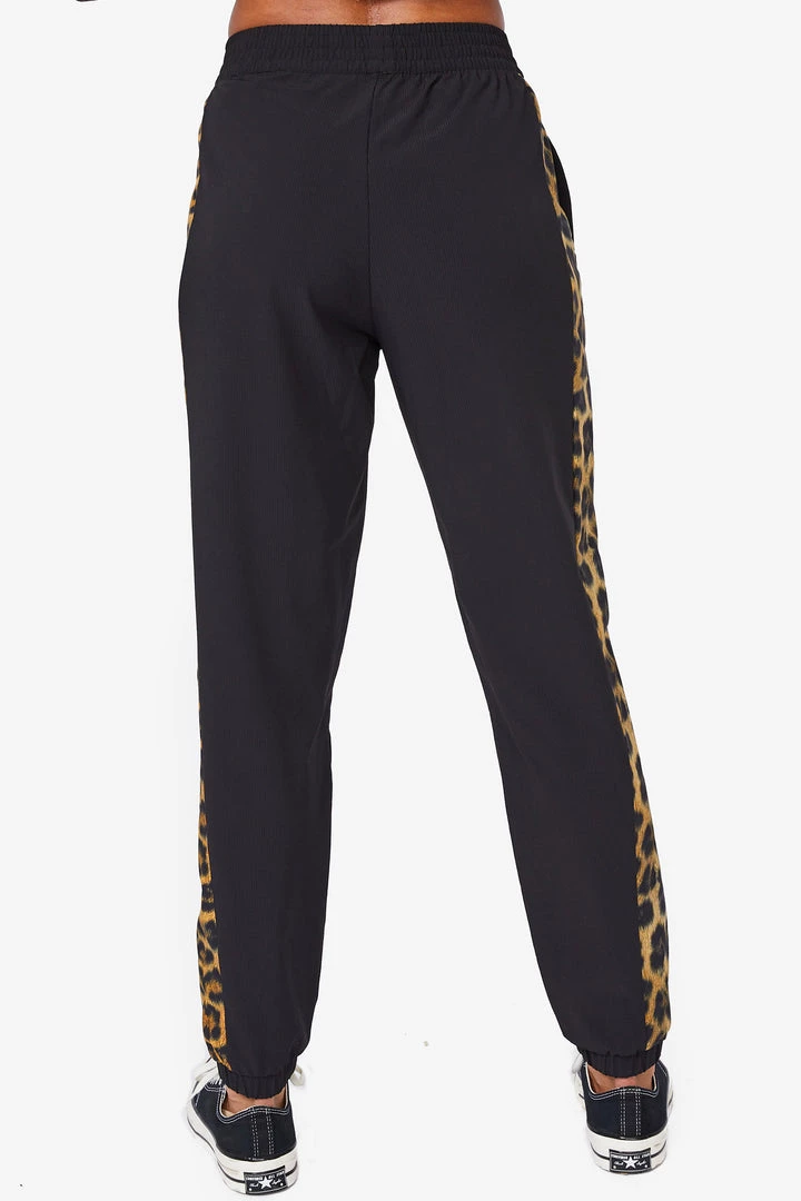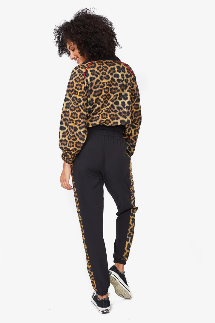 Our Leopard Goals Track Pants feature cuffs at the ankles, a cinched waistband, and hyper-realistic leopard print trim. Lightweight and loose-fitting for a relaxed feel, for all those early morning hikes and last-minute weekend trips.
