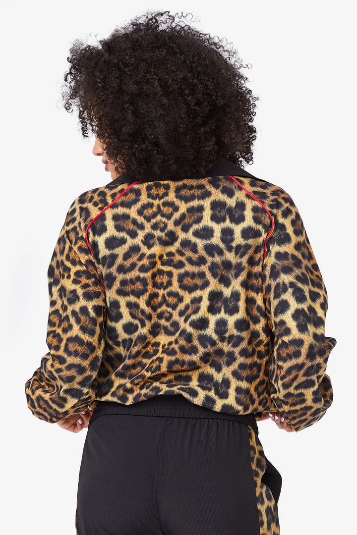 A retro jacket with the right fit and flair. Our Leopard Goals Windbreaker protects you from the elements—and looks good doing it, too! Red piping, black accents, and a hyper-realistic print make a bold statement wherever you go, while the cuffed wrists and waist add protection and insulation.
