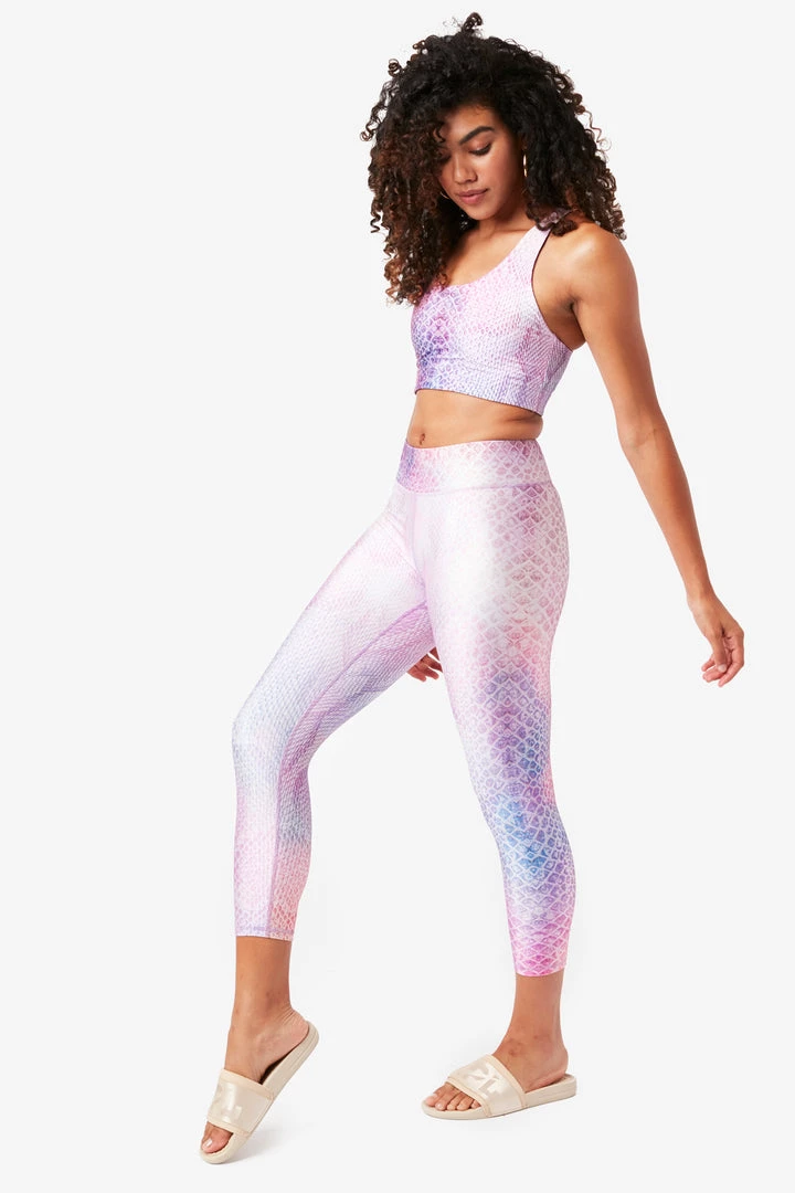 Slide onto the scene in our statement snakeskin leggings awash in rose, lavender, and periwinkle. This cropped style is equally suited for working out and being out and about. Just add your favorite top, a little attitude, and off you go.