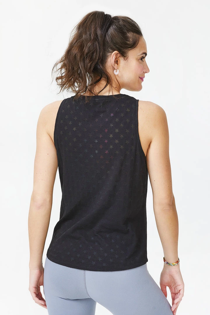 SKU: tank-6535550369836 Categories: Bras & Tops, Tanks & Tees, Women Tags: 2790, Color:Black, Fabric_page:Burnout, Full Price, In stock, Include in all, Print:Star, Type:Tank