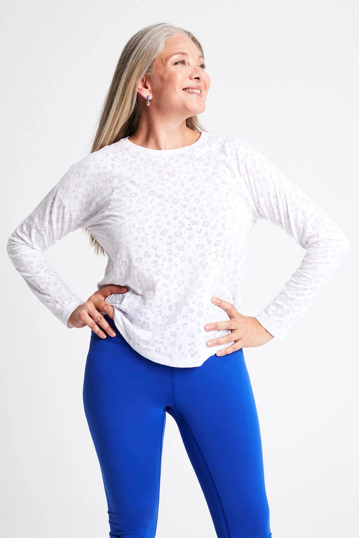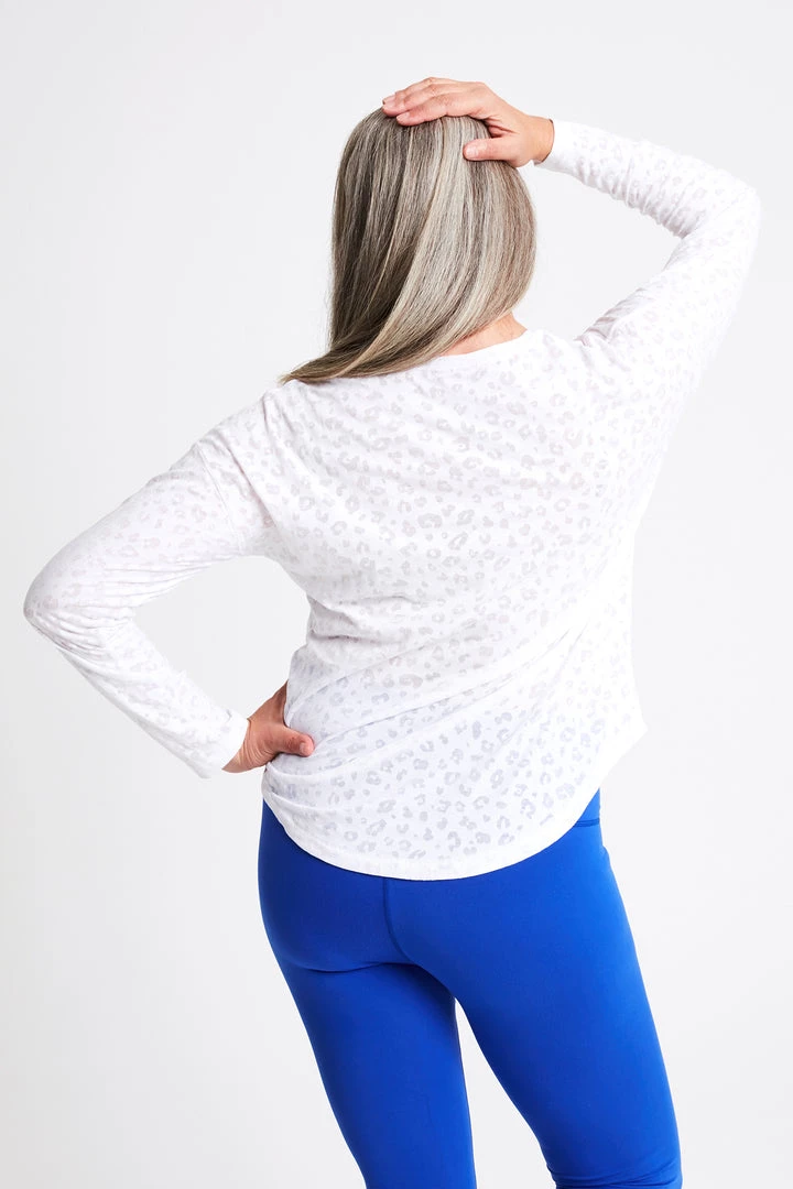 Terez Bras & Tops White Burnout Cheetah Long Sleeve Tee