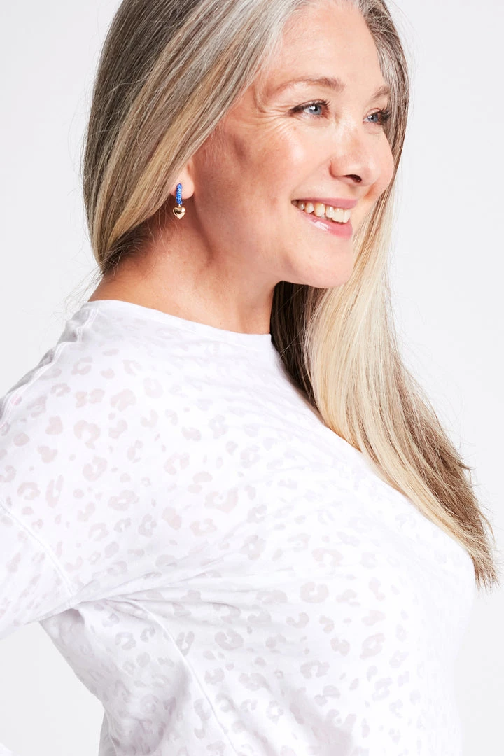 Our customer-favorite burnout tanks now come with versatile long-sleeves. Our softest Peruvian cotton layer is lightweight and body-skimming for comfortable coverage. The “burned out” cheetah print adds texture and sheerness to your favorite, everyday basics.