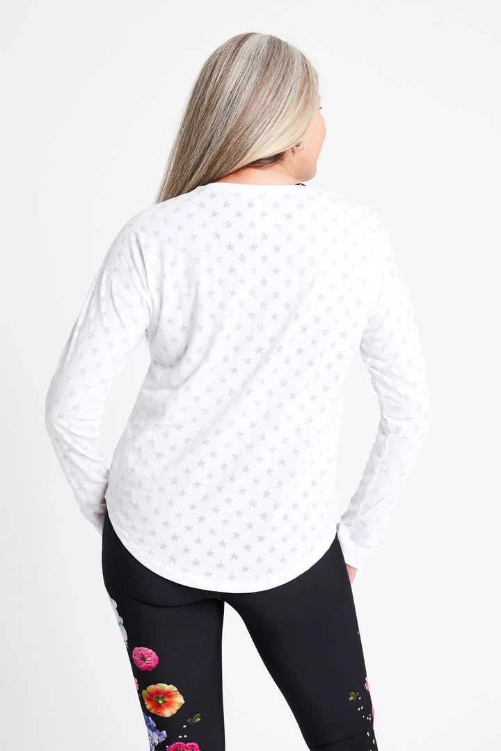 Terez Bras & Tops White Burnout Star Long Sleeve Tee