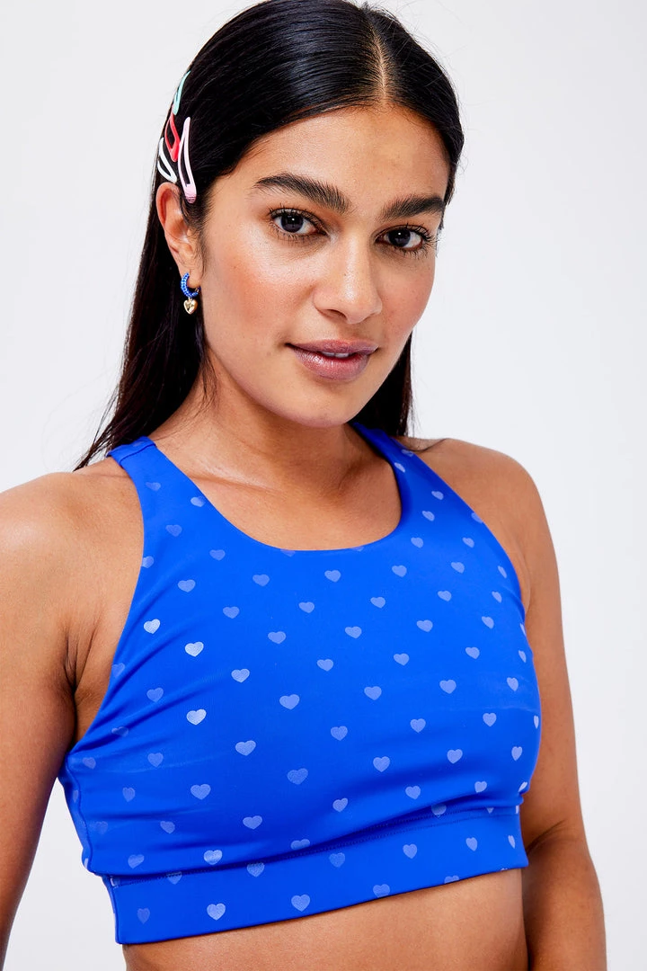 Terez Cobalt Heart Foil Uplift Sports Bra