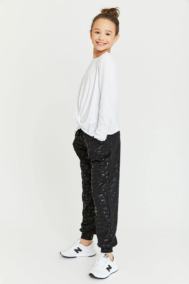 Terez Girls Black Cheetah Foil Jogger