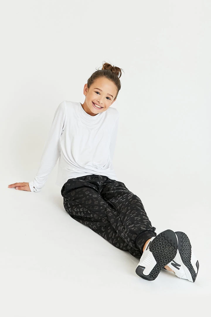 She’ll love our bestselling animal print sweatpants in her size! Made from our cozy but breathable French Terry in versatile black on black. The fun foil finish brings added shine, making them perfect for school days and playdates alike.