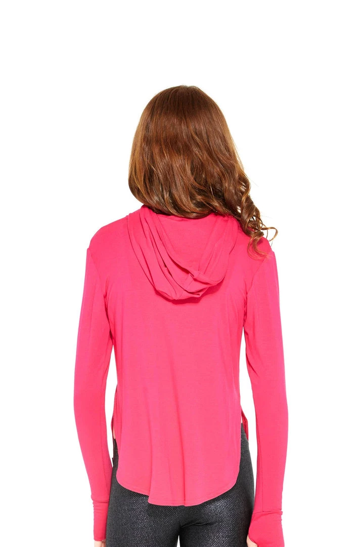 Stand out from the crowd in this Hot Pink Hooded Long Sleeve. With a cozy hoodie, cool thumbholes, and subtle side slits, you can rock this baby just about anywhere!