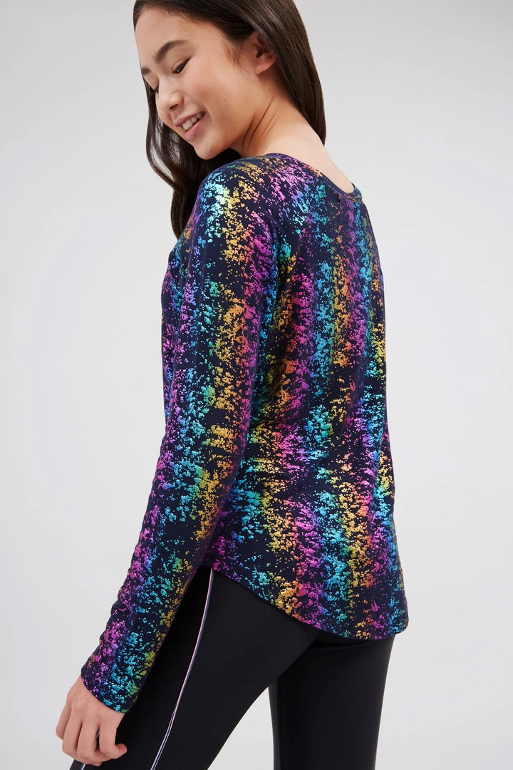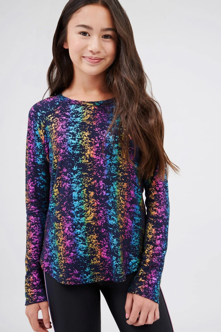 Terez Girls Navy Rainbow Haze Foil Baseball Tee