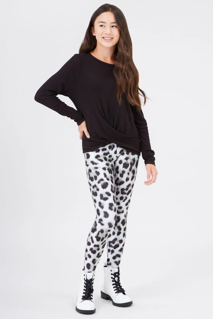 Terez Girls Waffle Twist Front Long Sleeve In Black