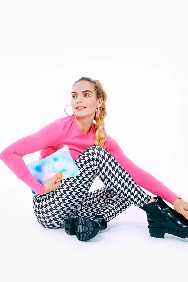 From the runway to going for runs your way, our houndstooth leggings blur the boundaries between fashion and fitness. Style yours with the matching sports bra and a boyfriend blazer for a layered look that’s equal parts preppy and off-beat.