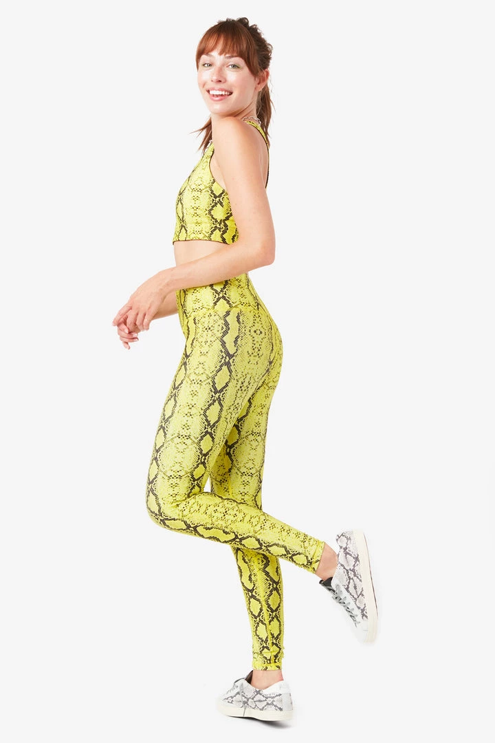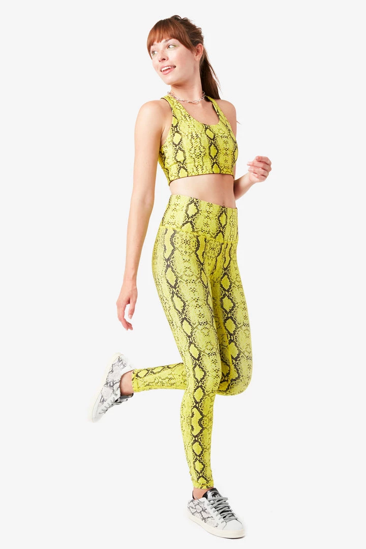 Can you say autumn revamp? Our best-selling photoreal python print now comes in off-the-charts neon green. Pair this supportive leggings style with a slouchy knit for a high-contrast casual look. Or, slip into the matching sports bra and get your sweat on.
