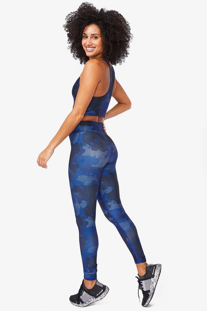 Terez Navy Camo Stripe Hi-Shine Leggings