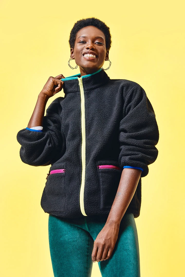 Make everywhere your “comfort zone” in our cozy fleece jacket. Accented with playful pop trim, this throw-on-and-go layer is Insta-ready. Plus, the high neck and moisture-wicking fleece shield you from the elements.
