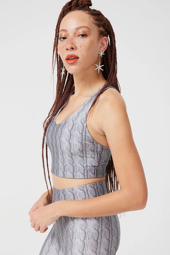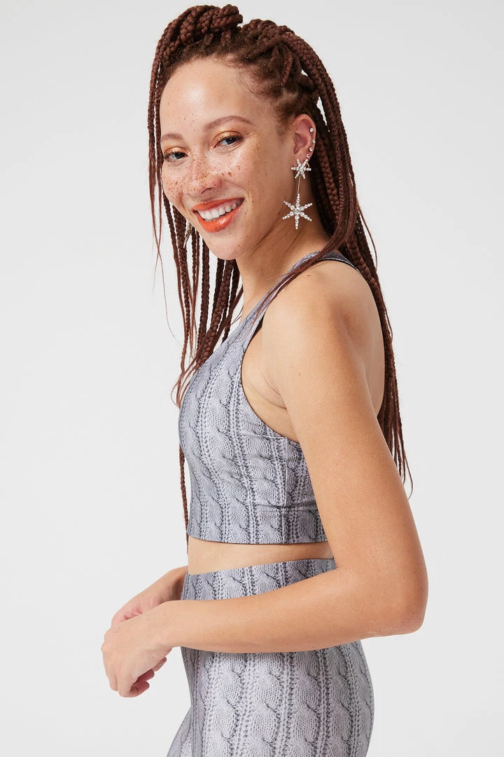 Terez Silver Cable Knit Hi-Shine Sports Bra Bras & Tops