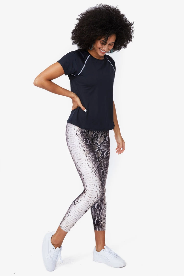 Perfect your cobra pose in our cropped leggings with the photoreal look of real snakeskin. Worn with the matching sports bra, this seasonless print is one “second skin” you’ll never want to shed.
